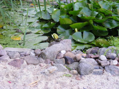 Der Frosch grüßt die Fliegen mit "Hallo".